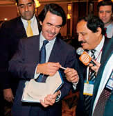 TELEFÓNICA. Sobre la relación del Perú con la empresa Telefónica, Aznar se limitó a señalar que "las leyes y contratos se deben cumplir".